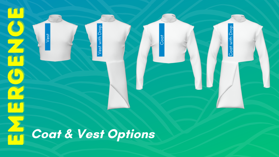 The Emergence Line is a game-changing collaboration between Director’s Assistant and Synced Up Designs, offering the structured look of a classic marching uniform with the speed, affordability, and flexibility of digital printing.