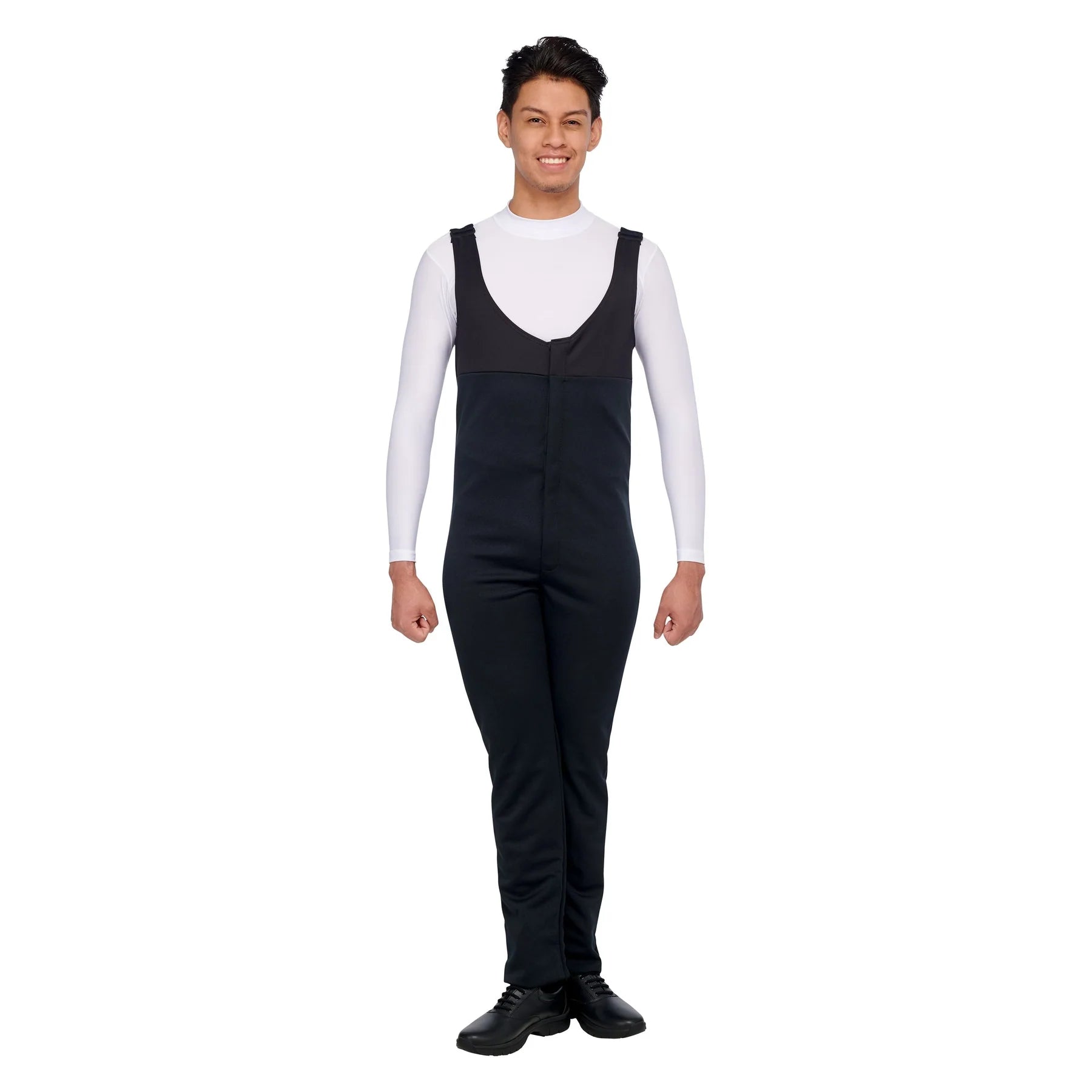 - Front chest zipper and snap tape on legs to change length