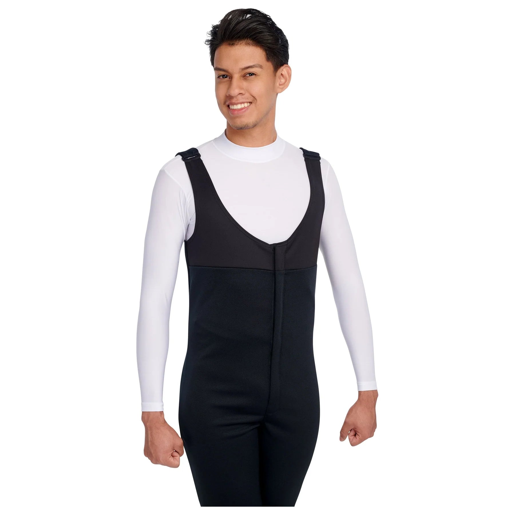 The Platinum bibber is made out of heavyweight stretch fabric on bottom half