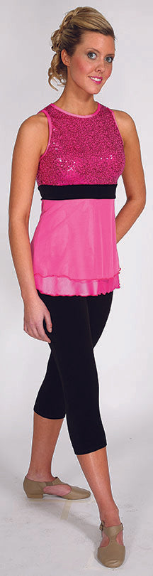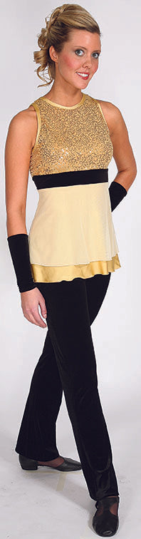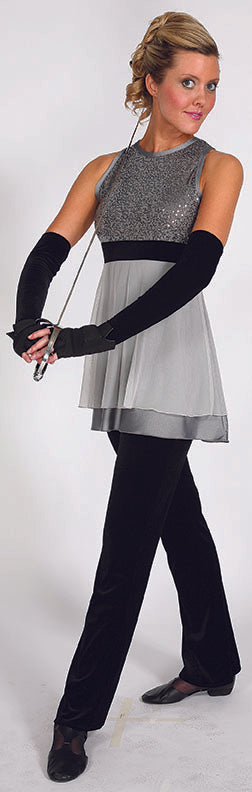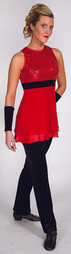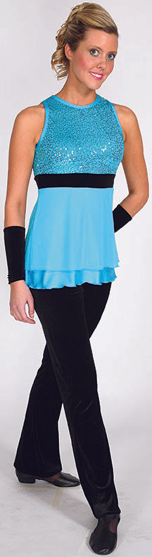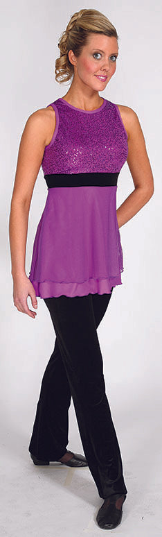 Spotlight your performers in rich texture and vibrant color. These elegant tops and tunics are made of a sparkle sequin yoke, stretch mesh and lycra skirt with stretch velvet waste band. Trimmed with lycra and accented by a keyhole back with tie closure. Pair with our stretch velvet mitts or cuffs for a polished, performance ready look!